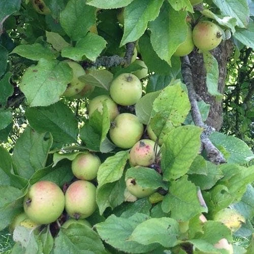 Discovered by a Mr. Dunkerton as a seedling in his Somerset orchard in the 1940s, Apple Dunkerton Late Sweet is a cider apple which produces a light, sweet, fruity cider, low in acid and tannin. The fruit is small and yellowish-green with a light flush of red; the flesh is greenish-yellow and firm. Moderately vigorous tree with spreading habit. Spurs readily and is very disease-resistant, especially to scab.