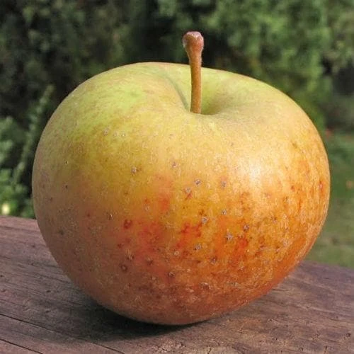 A very old Irish heritage variety of dessert apple, also called French Pippin, as it was first grown in Rosslare from a pip of French origin. Round, medium sized fruit, light greenish-yellow with patches and stripes of red and heavy golden-brown russeting. Rich, aromatic, pear-drop flavour, sweet, with a good acid balance. Apple Ross Nonpareil is a moderately vigorous, rather twiggy, upright tree. Spur-bearer. Heavy cropper – thinning recommended for larger apples. Early flowering, so less suitable for colder sites.  Late harvest and good storing qualities, like many russets; the apples hold on the tree after leaf-fall.  Resistant to canker and very resistant to scab – a good choice for wetter areas.