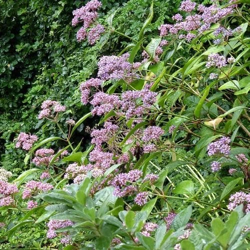 A striking Hydrangea-like evergreen shrub, usually with vivid blue flower heads in late Summer and Autumn, followed by iridescent indigo-blue berries. Like Hydrangeas the flower colour varies with soil pH, blue on acid soils, becoming pinkish-white on alkaline ones. Not very hardy and needs shelter and winter protection in cold areas, otherwise quite easy to grow. Often used in traditional Chinese herbal medicine. Has been used to treat malarial fever.