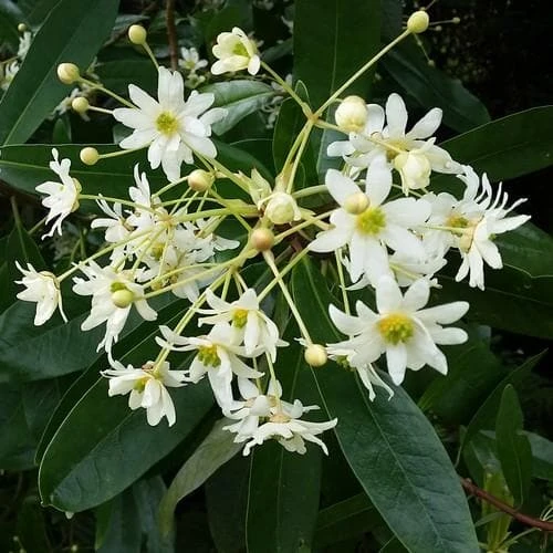 Syn. Wintera aromatica, a tall slender evergreen tree that is native to the Magellanic and Valdivian rain forests of Chile and Argentina, Drimys winteri has attractive leathery light green leaves that are said to taste like strong pepper. The aromatic pungent bark is powdered and used as a pepper substitute in its native range. Clusters of delicately fragrant creamy-white flowers in Spring, later followed by blue-black fruits. A great choice to plant as an evergreen specimen, ideally given plenty of space.