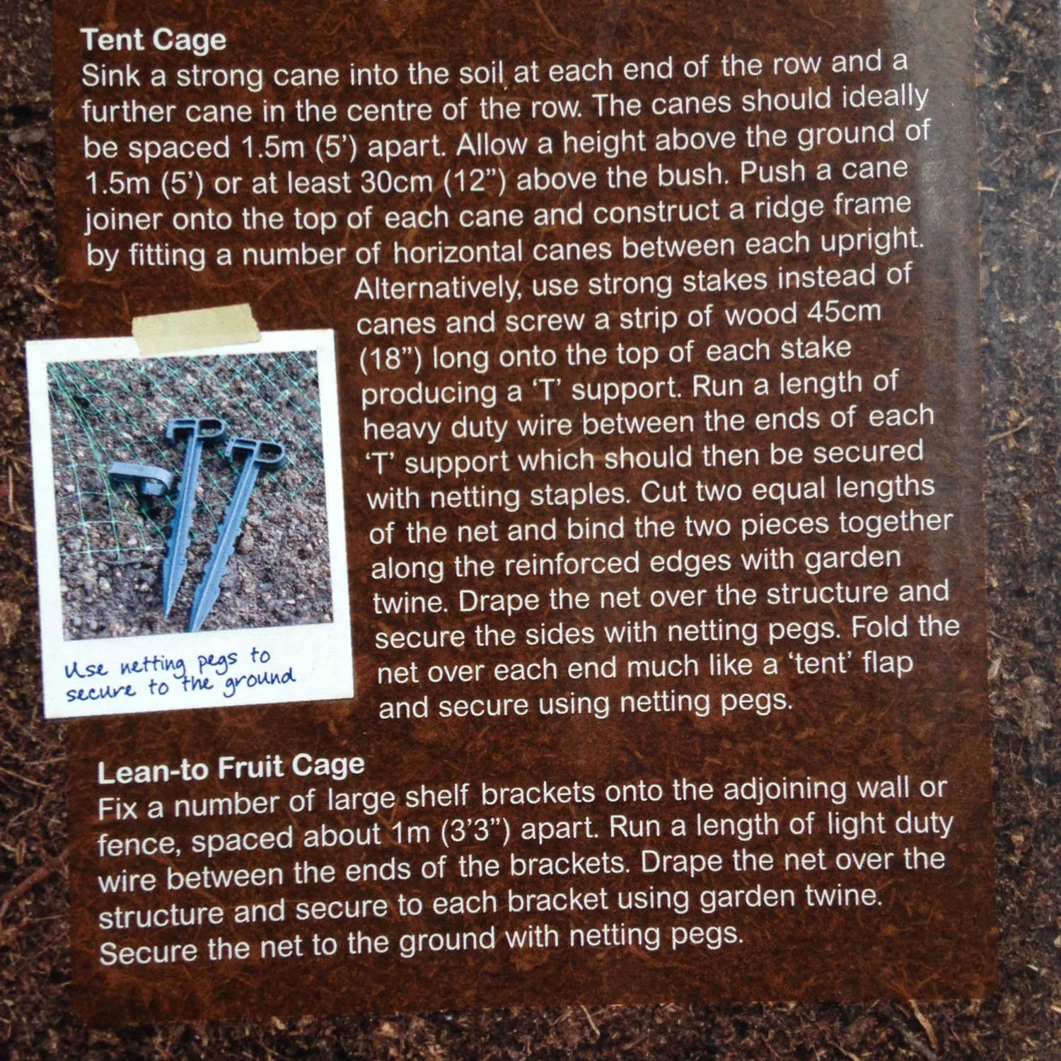 This fruit cage and crop protection net is specifically designed to be used over a simple framework which can be constructed using a number of strong canes and cane joiners. The net has a square mesh which makes it ideally suited to fruit cages, easy to handle and tangle-free. It is also rot-proof and has reinforced edges for additional strength.