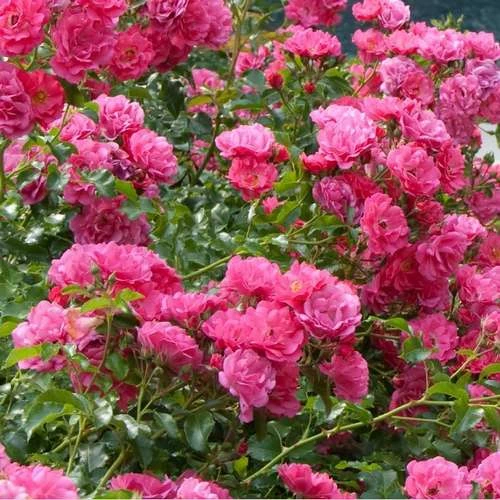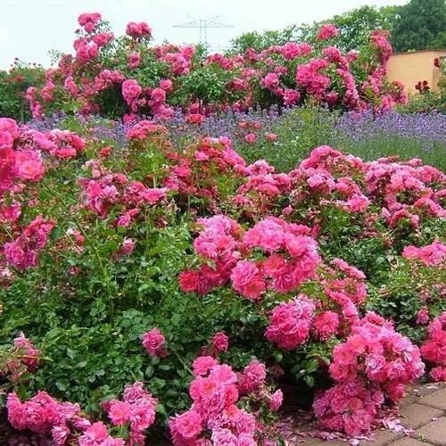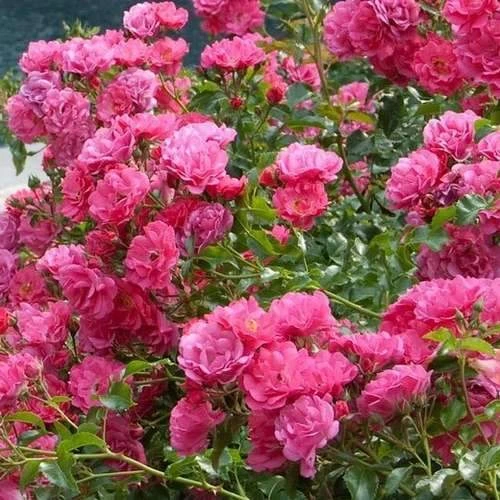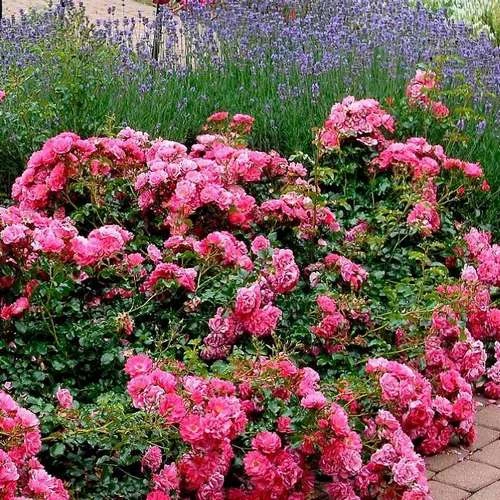 Rosa Flower Carpet Pink produces masses of pink flowers throughout the summer and into Autumn. Repeat flowering, continuously from June to October. Disease resistant. Height & Spread: 2ft x 2ft