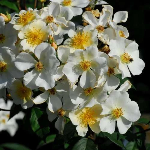 Discovered by and named for the famous plantsman, artist and gardener, Rosa Sir Cedric Morris is a very large, vigorous, thorny, deciduous rose with long, lax stems and beautiful, divided leaves flushed with purplish-grey, a legacy from its Rosa glauca parent. Like most ramblers, it flowers magnificently in midsummer, but does not repeat. Huge clusters of small, single, creamy-white flowers with golden stamens and a gentle scent are borne in midsummer, making a breath-taking spectacle. The flowers, which are attractive to bees, are followed by bright orange-red hips in autumn, giving a second season of interest. Rambler rose Sir Cedric Morris is a tough, hardy rose, particularly good trained over a pergola or up a tree with a late-flowering viticella-type clematis, which will flower when the rose has gone over. Because its stems are lax, it is easy to train.
