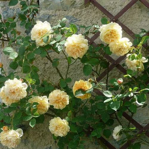 A rose of great beauty with rich yellow, rosette-shaped blooms. Lovely, strong tea fragrance. Rosa Teasing Georgia is reliable, extremely healthy and easy to grow. Repeat flowers well. 5ft x 4ft AGM