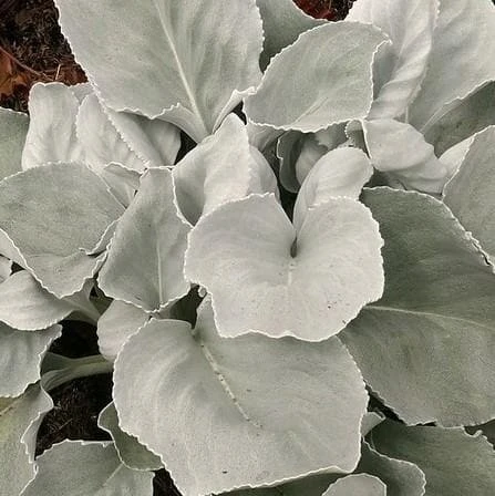 Also known as shining-white ragwort, this is a beautiful foliage plant for a dry, sunny spot, as it is drought-tolerant once established. Senecio candicans Angel Wings is a small, rather short-lived, clump-forming, evergreen perennial with large, rounded, velvety, silver leaves. In summer, the plant bears flat clusters of golden-yellow flowers. The downy texture of the leaves makes it ideal for a sensory garden. Senecio Angel Wings is borderline hardy, and will need frost protection in all but the mildest areas, but it can be grown in very free-draining compost in a pot and taken under cover for the winter.