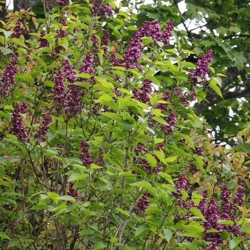 Tall shrub or small tree. Glossy green heart-shaped leaves are adorned by sweetly fragrant dense clusters of double deep reddish purple flowers in late May or Early June. All lilacs are hungry and thirsty plants and should therefore be positioned with due consideration. Can be pruned hard to rejuvenate in mid-winter Some flowering may be lost after pruning as flowers are produced on two year old wood.
